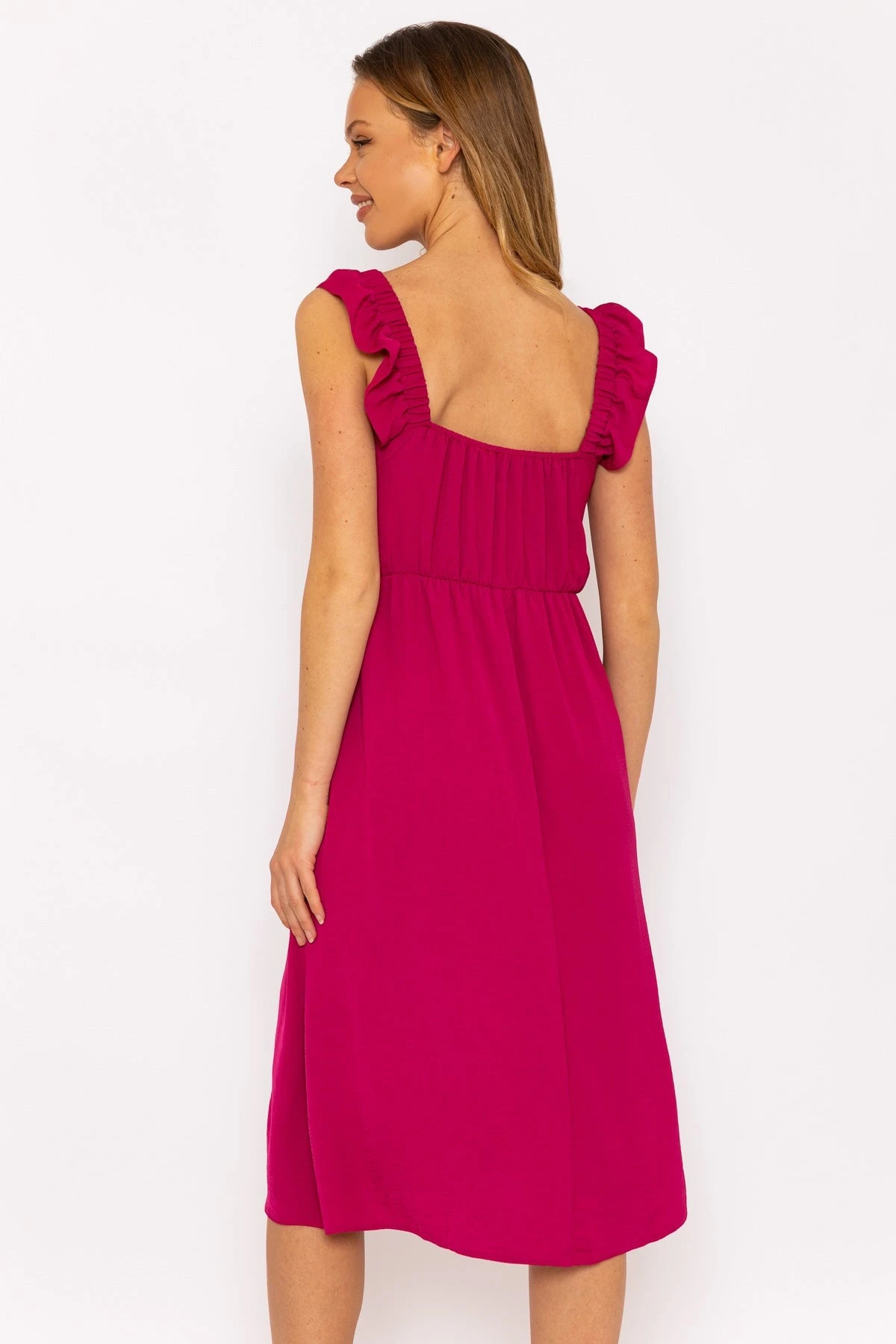 Pink midi dress by Rowen Avenue. A versatile occasion wear or causal dress that can be dresses up with heels or dressed down with trainers.