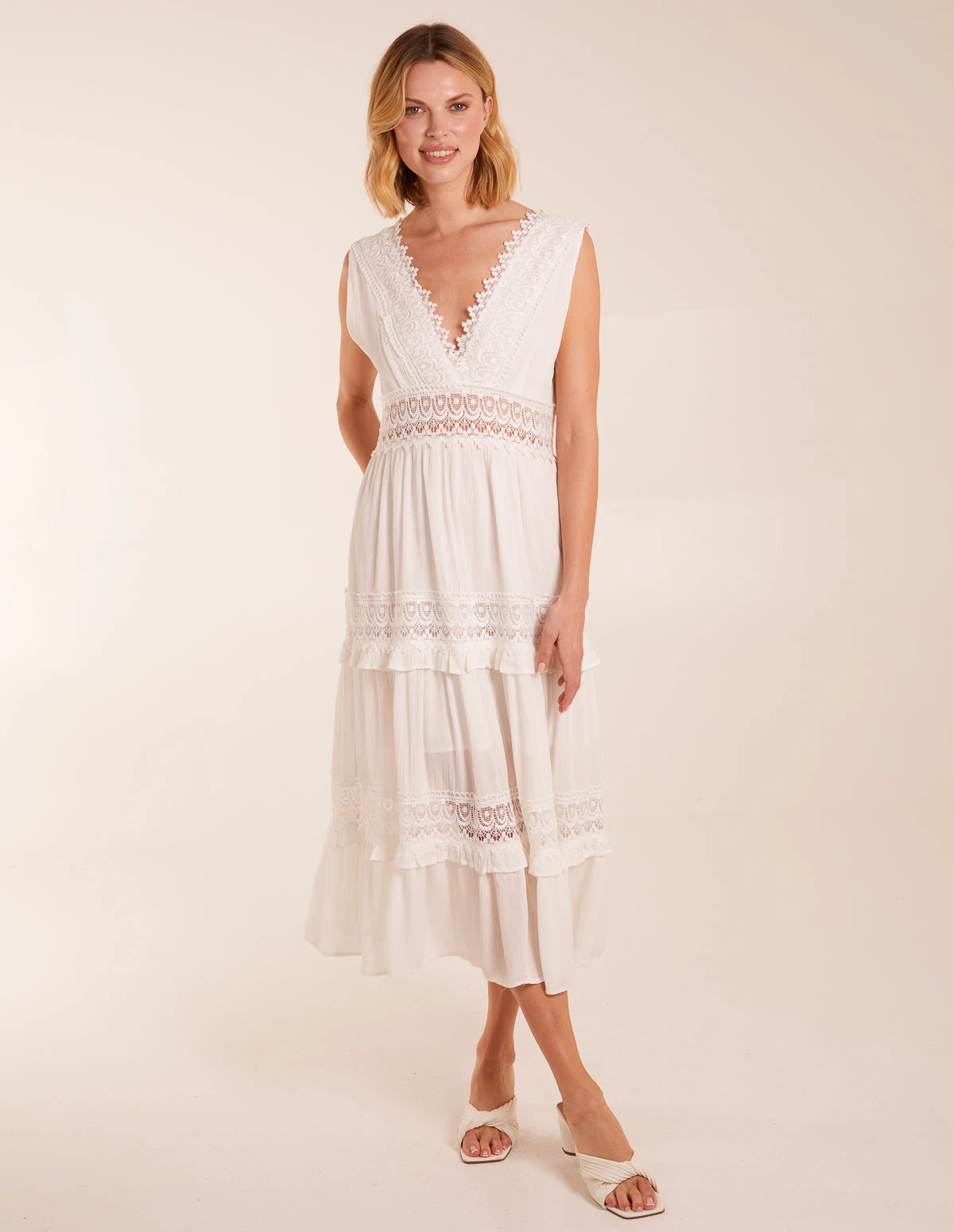 Your go-to white dress for holidays and hot weather plans. Fully lined with lace hem detail and the comfiest tiered skirt. Gorgeous paired with sandals or wedges and a wicker bag.