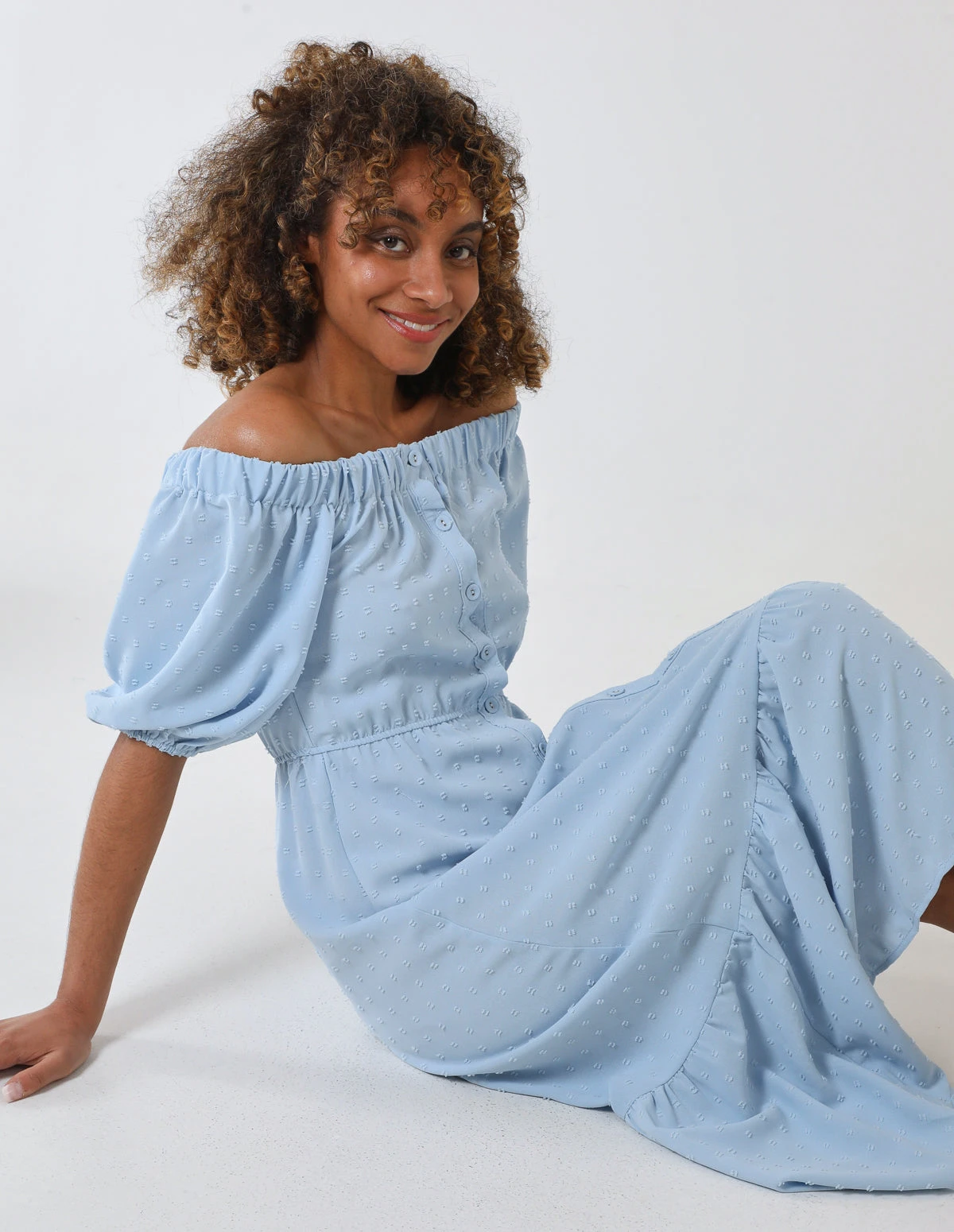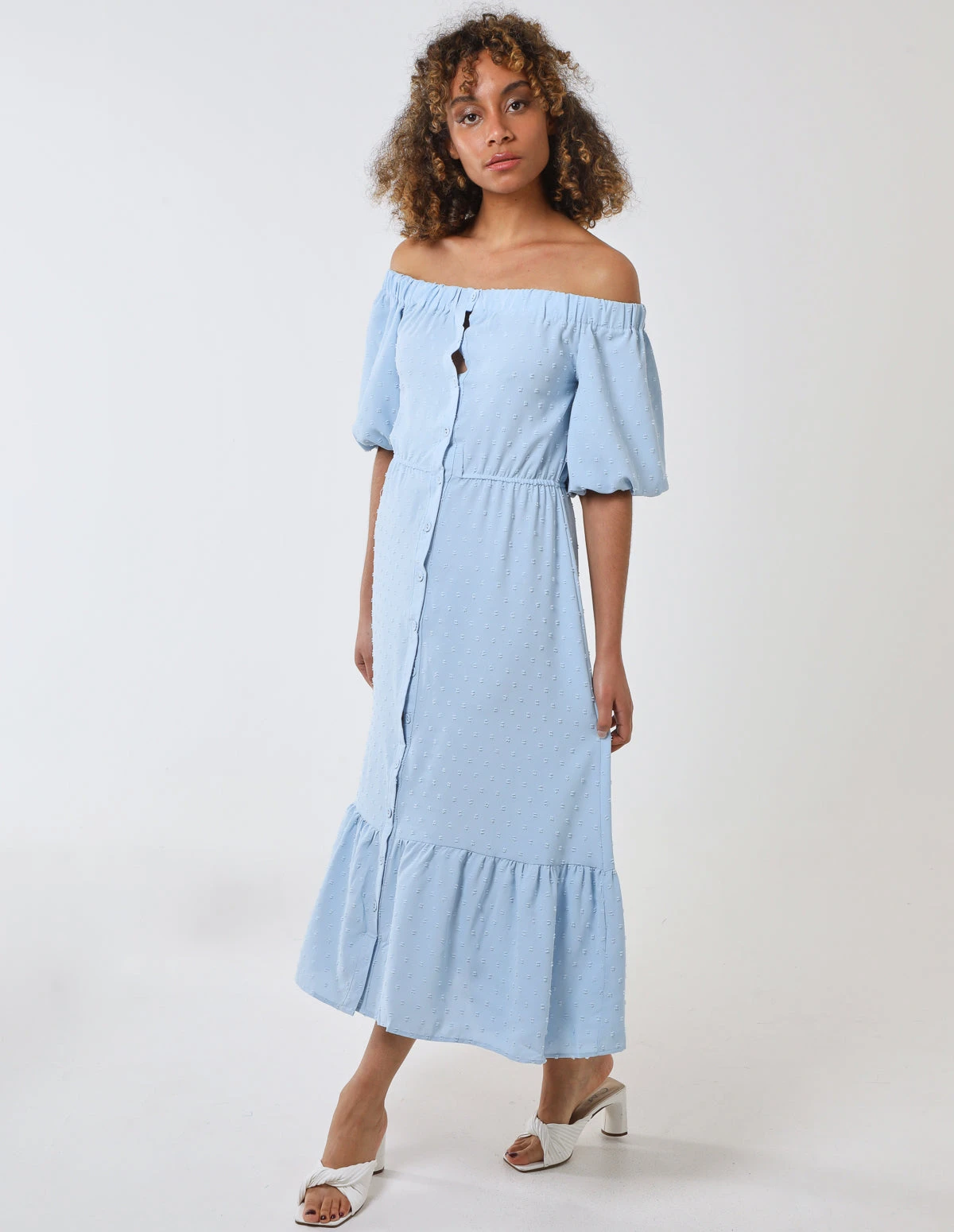 Enjoy a nice sunny day with this Bardot Button Through Midi Dress.