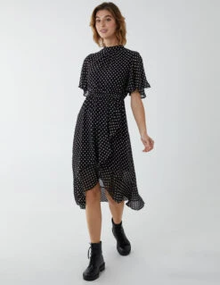 It’s time to look pretty in polka dots! This ruffle polka dot midi is the perfect elegant style to be worn all year round! Team with black pumps and be ready to go!