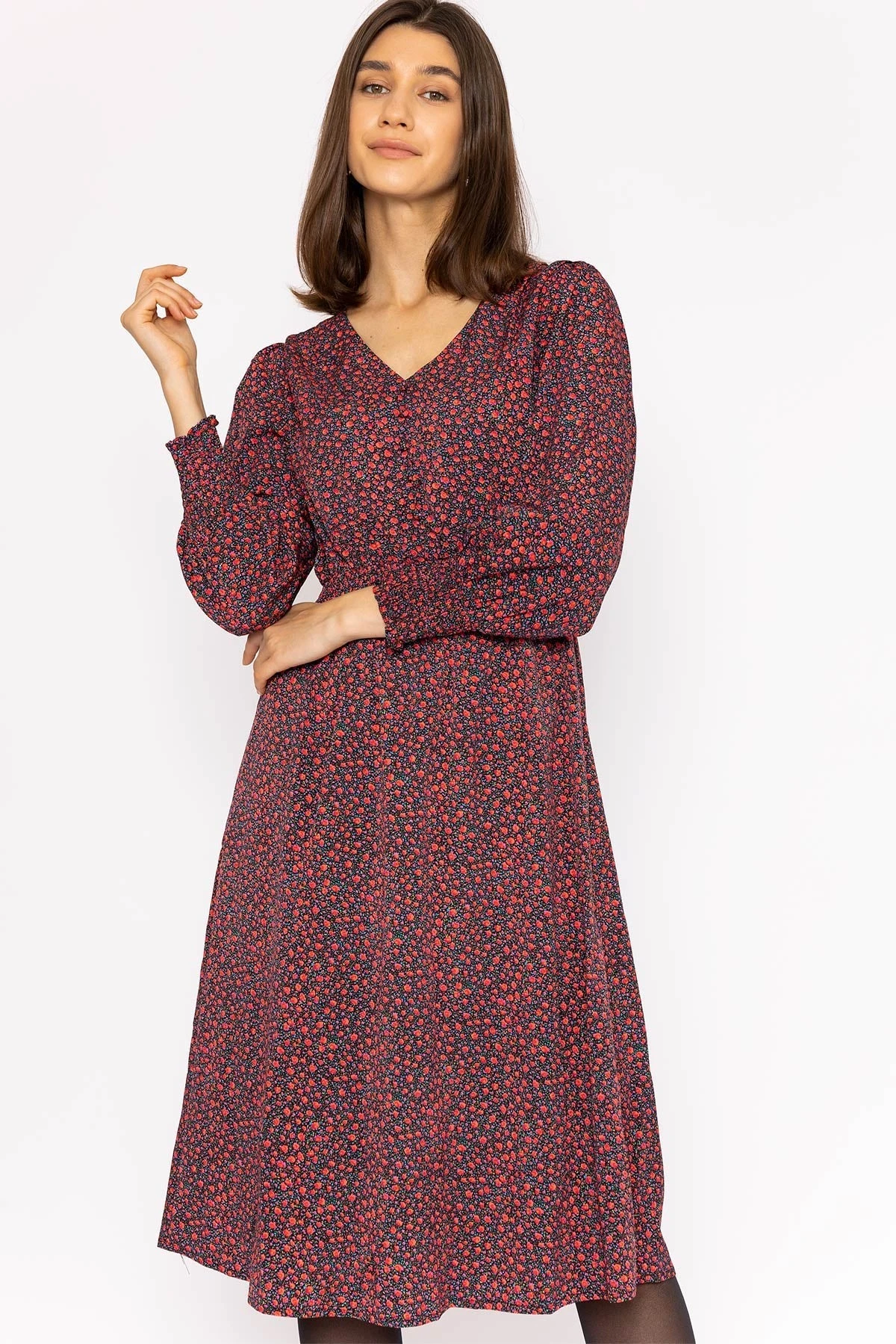 Midi dress in floral print by Rowen Avenue.