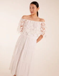 Crochet Lace Shirred Waist Midi Dress of your dreams. This Spring style will keep all eyes on you! Pair with kitten heels for a perfect date night style.
