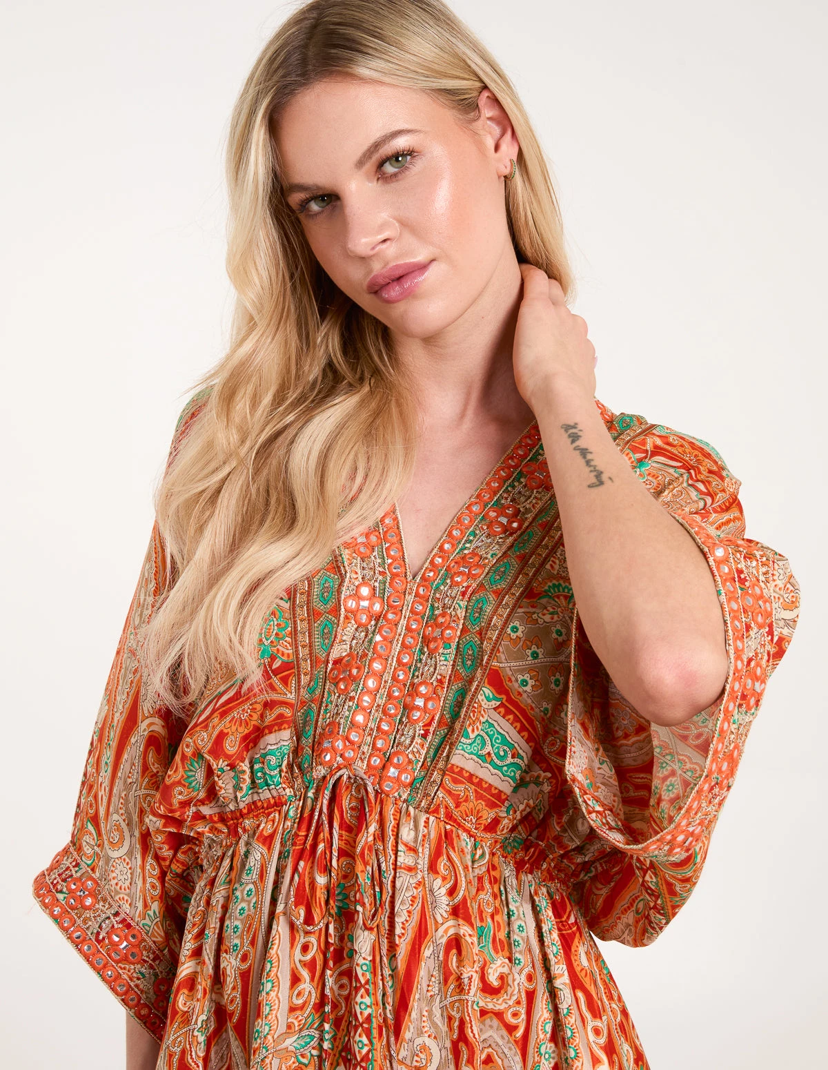 Feel good in boho prints this Summer wearing this paisley print kimono dress. The perfect silky dress to wear from day to night!