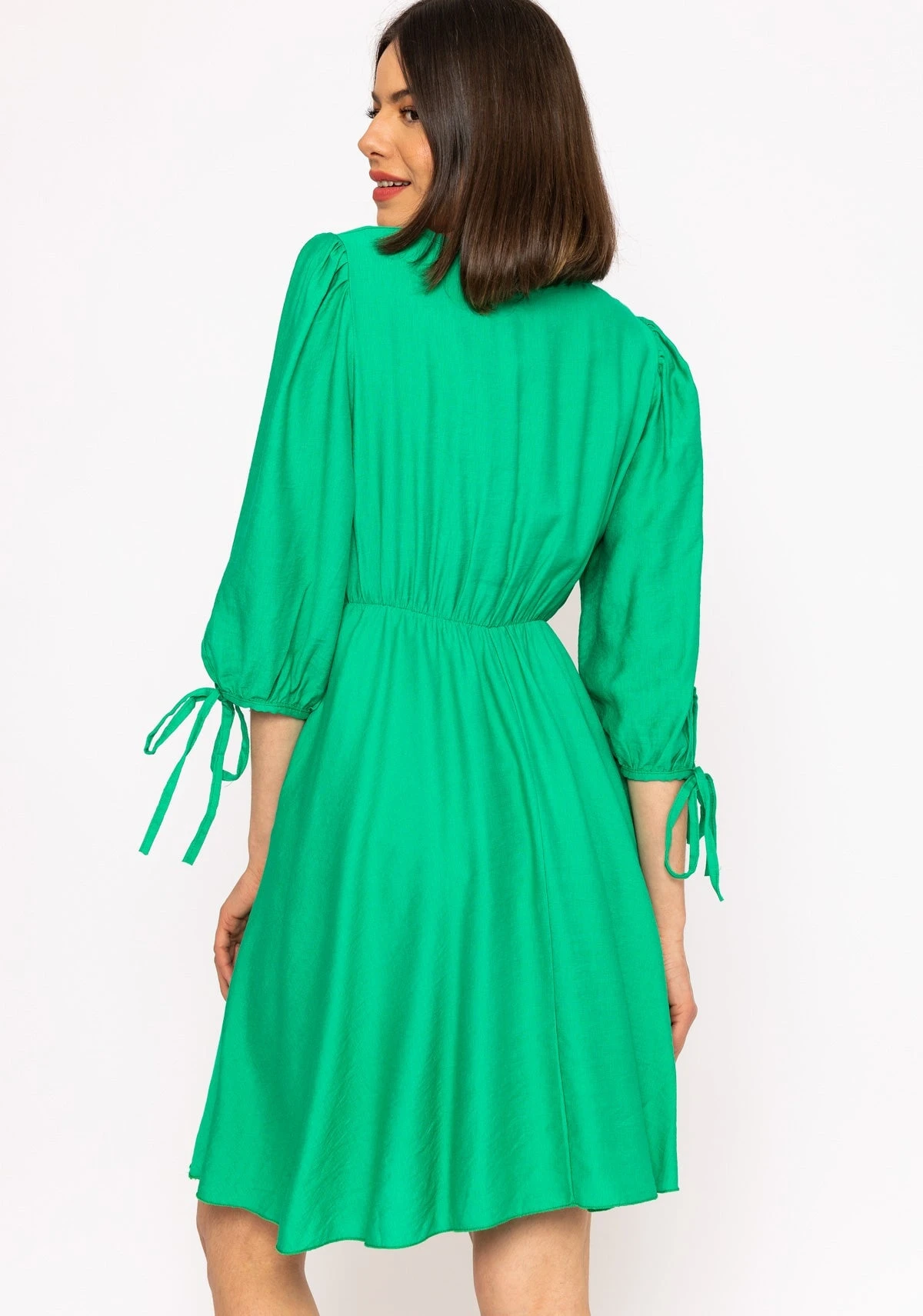 3/4 length sleeve dress in green by Pala D’oro. This cool and comfortable dress is the perfect addition to your summer wardrobe. Its classic silhouette is perfect for special occasions and everyday wear.