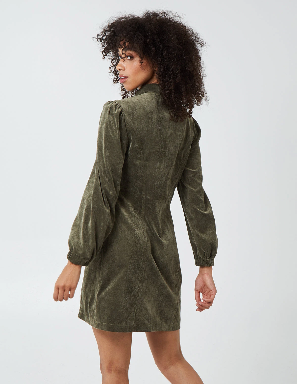 This cord front zip shirt dress is necessary in your wardrobe in this season. Will keep you warm and smart. Perfect to day to day wear. Match it with black long high boots.