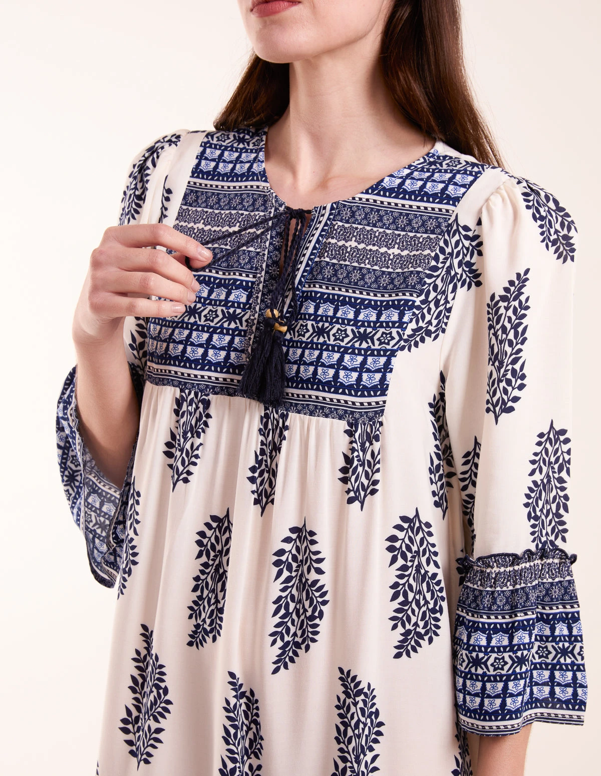 Round tie up tassel neckline