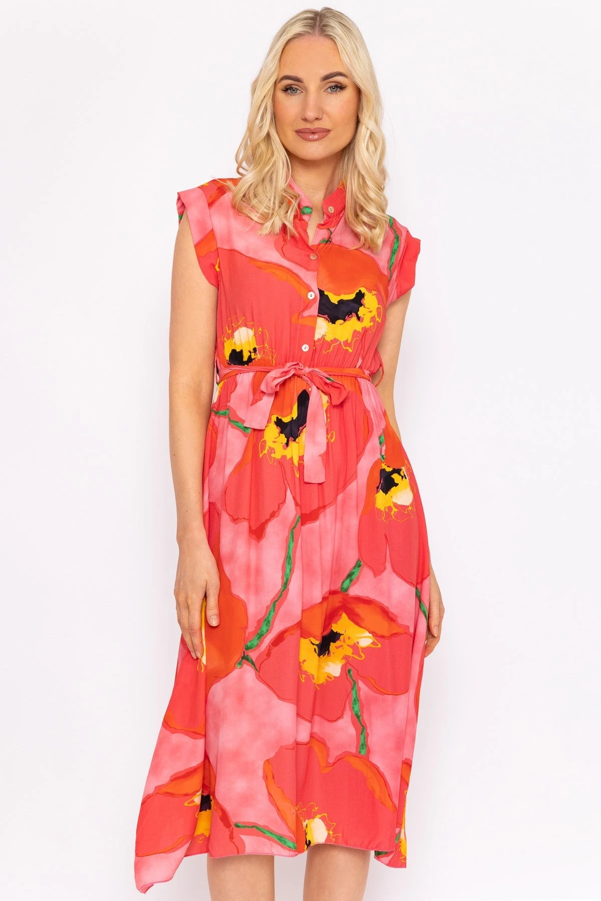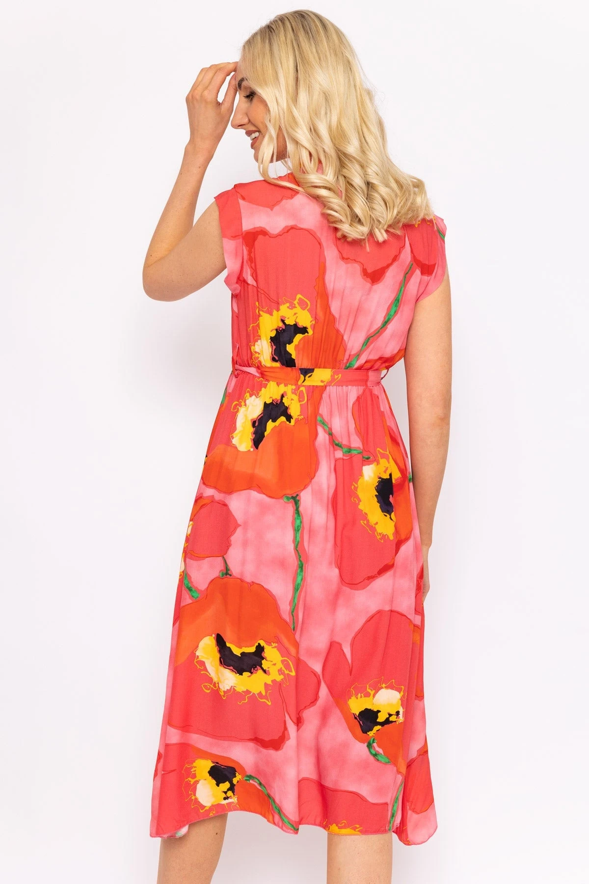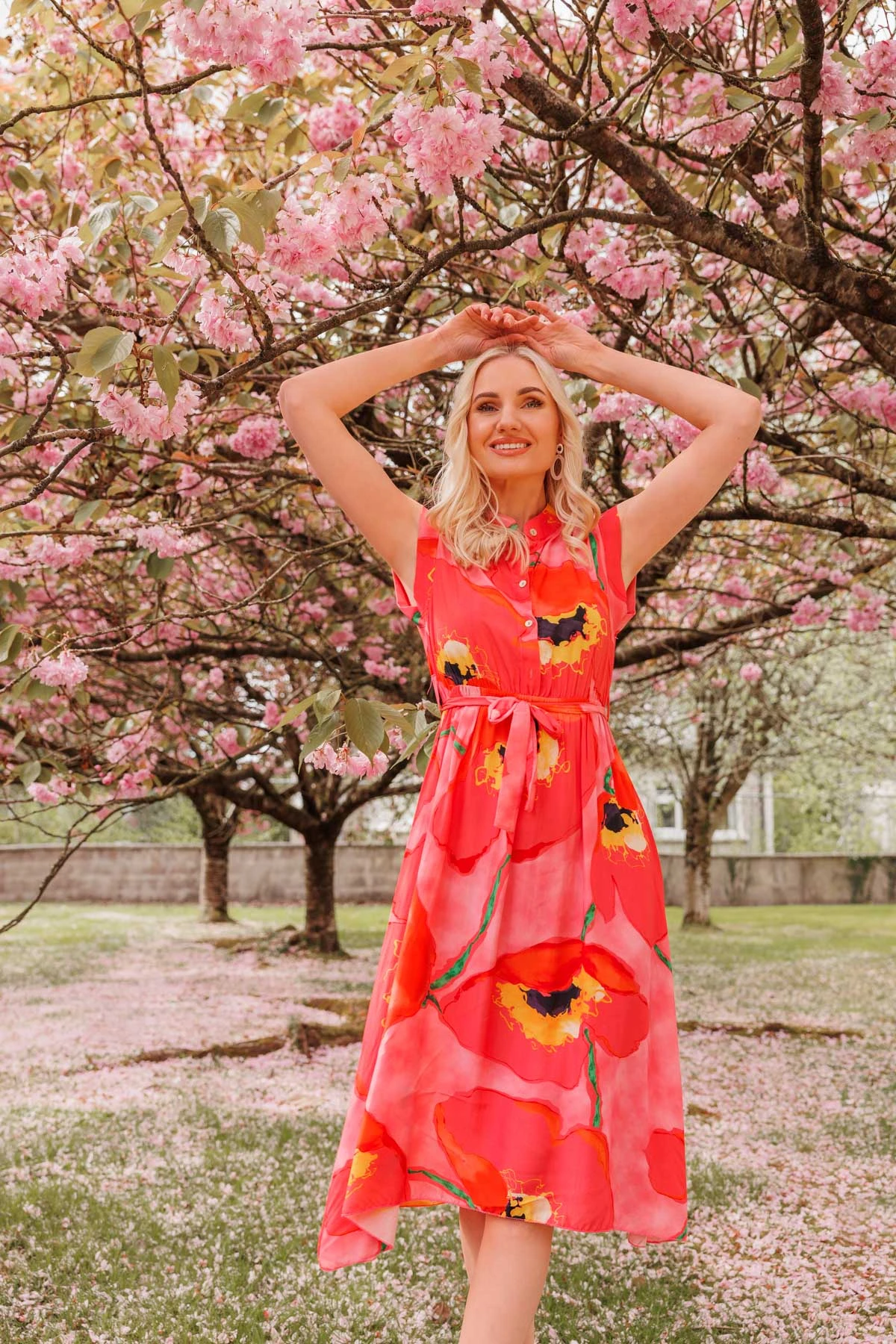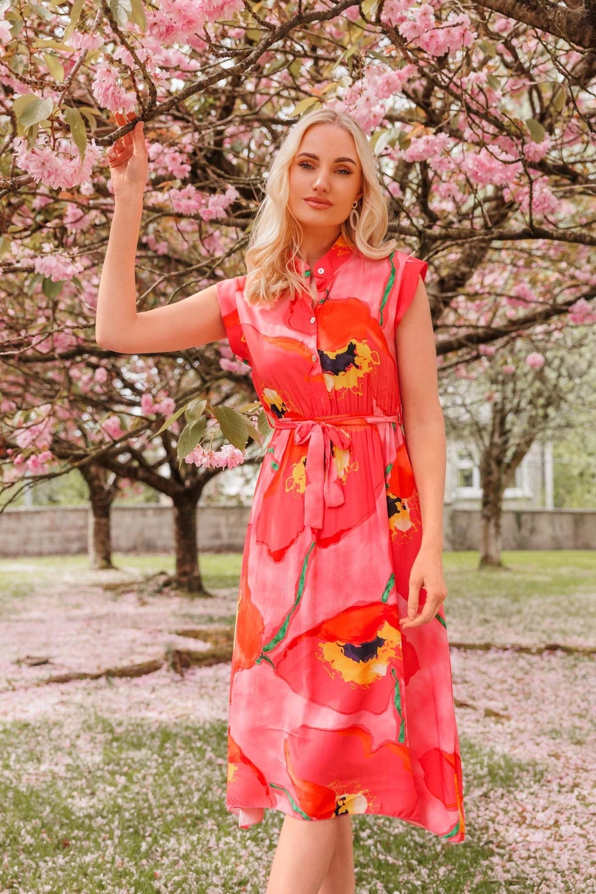 Floral poppy printed ruffle sleeve midi dress by Rowen Avenue.