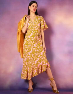 This lightweight midi dress will be an essential for your summer wardrobe. Flare fit, floral print and angel sleeves will keep you cool when things start to heat up. Pair with pair of sandals for a chic summer look.
