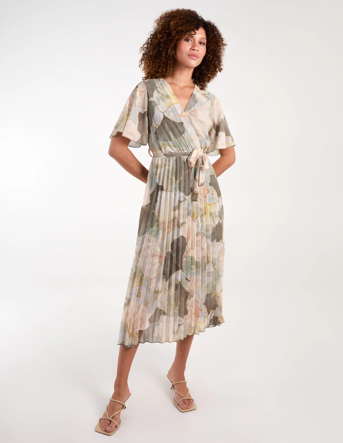 Step out in a pretty, printed pleated dress to make you feel like your very best at the next special occasion in your social schedule. With it’s beautiful detailed print, team this pleated midi dress with a cream woven clutch bag, and strappy heels.