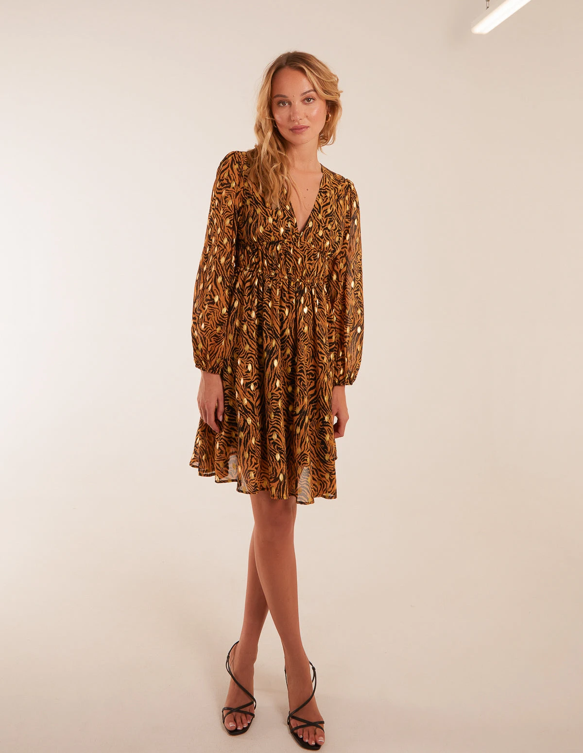 Be the queen of the jungle with this lovely animal printed Shirred Waist Mini Dress. Sexy and comfy, with a perfect autumn print – what more you can ask for?