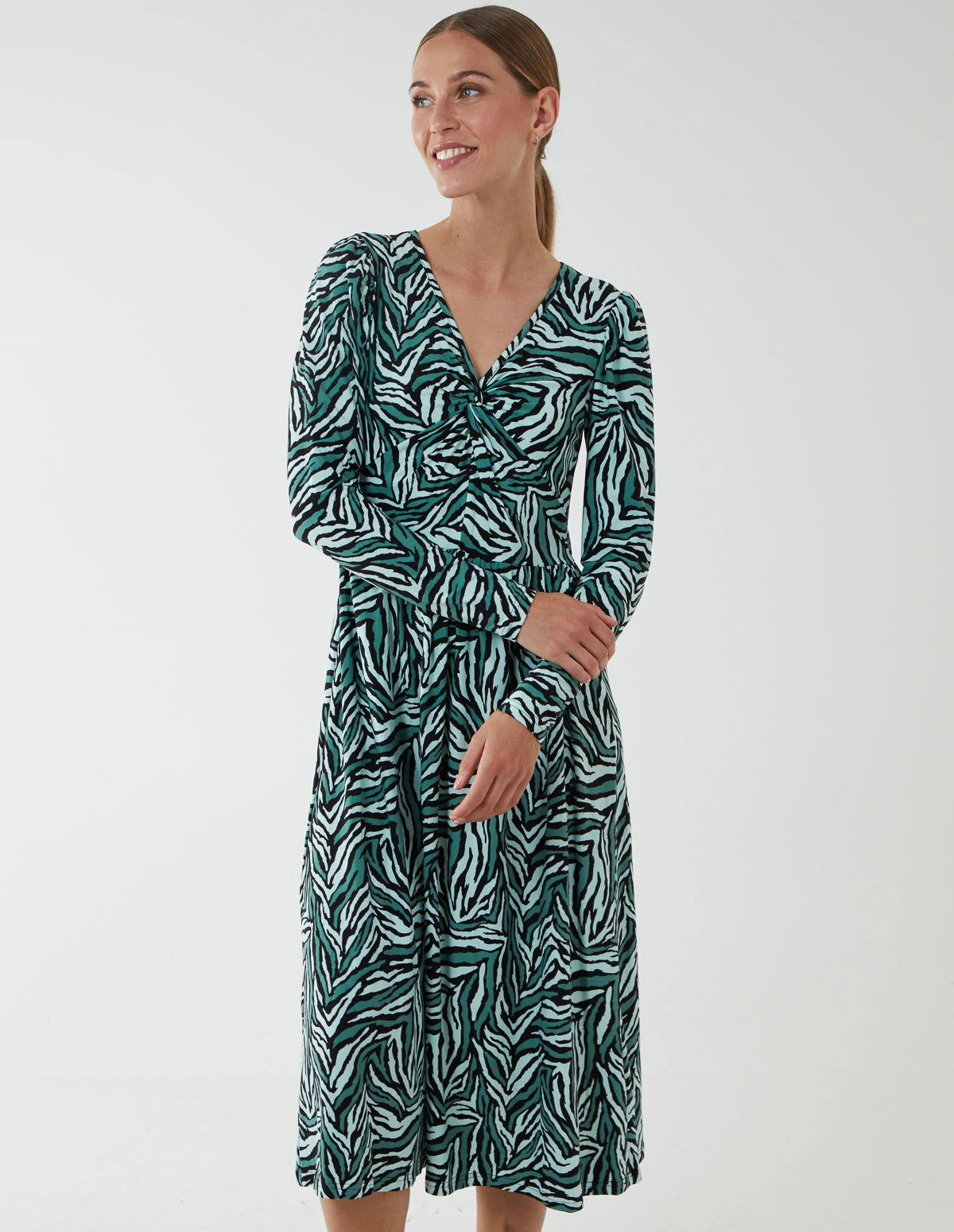 Step into a new style era and never look back with the Twist Front Midi Dress. This print dress also includes a chest twist front and a midi length. Now that you have styled this dress with ankle strap high heel boots, enjoy a lovely evening with your special someone.