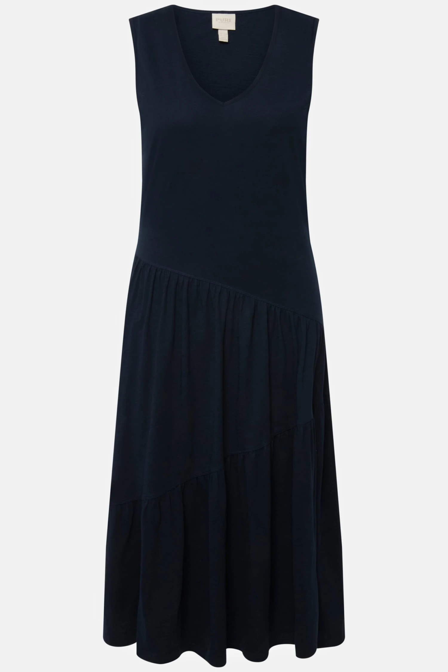 Navy sleeveless eco cotton midi dress by Ulla Popken.