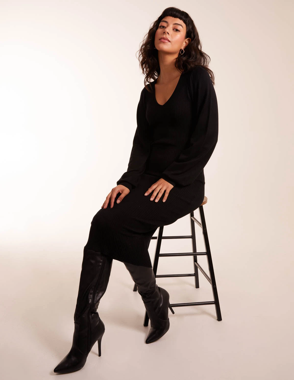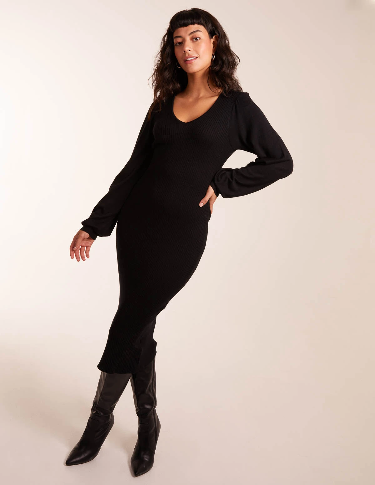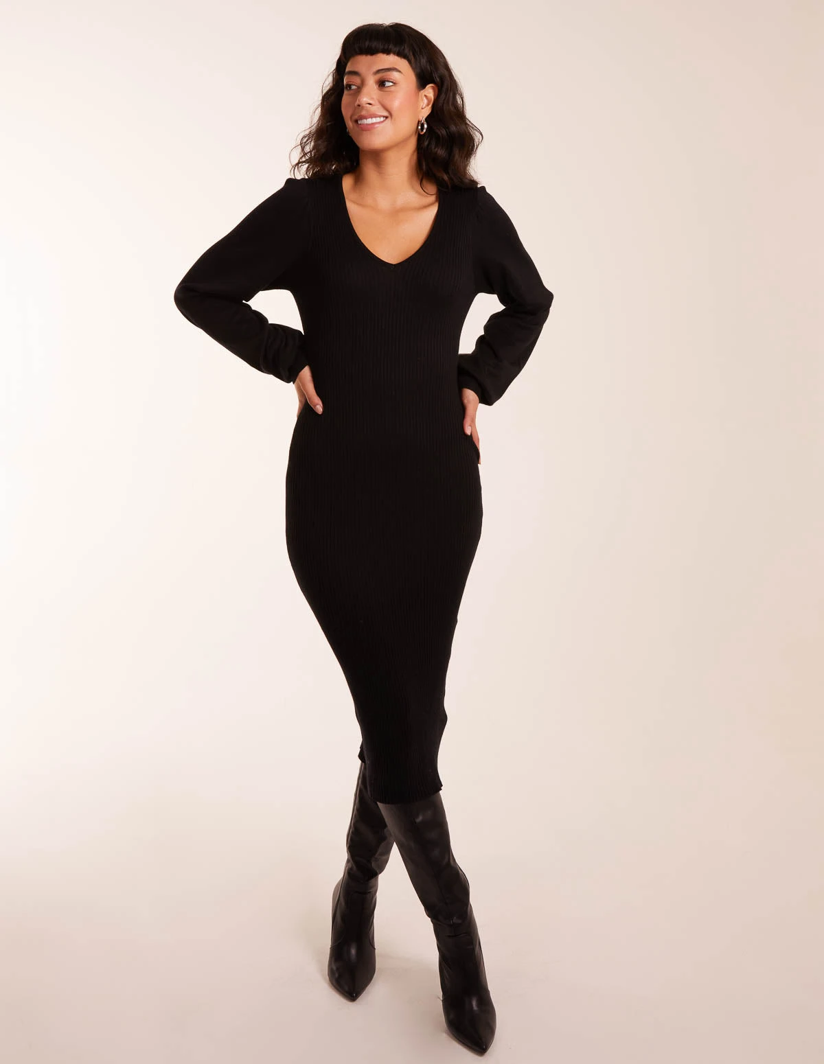 The perfect fitted ribbed dress to flaunt them curves! Team with tights, and chunky boots!