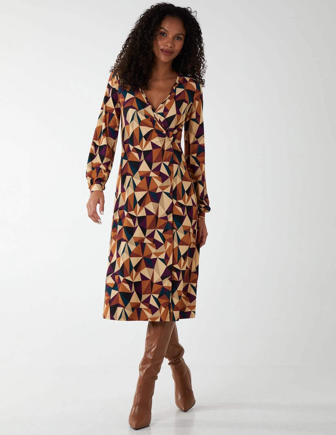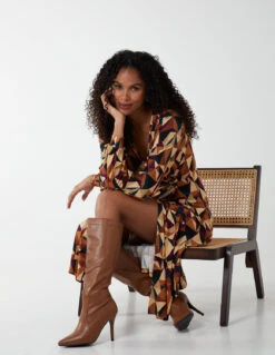 Special event? The V Neck Ring Detail Midi Dress it is! This elegant dress features a geometrical print, elasticated waist and a v neckline. Finish your look by matching this dress with high heel ankle boots.